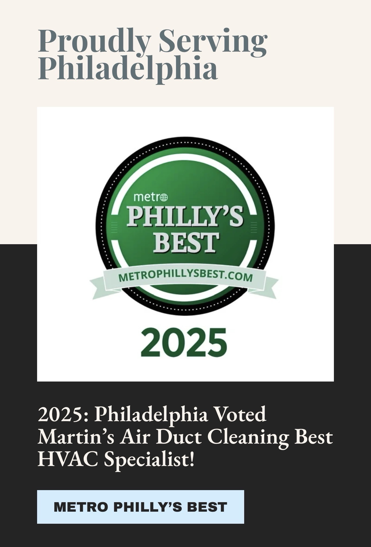 • 🏆 Voted “Best HVAC Company” 2025 – MetroPhilly: Out of hundreds of local contractors, Philadelphia residents chose the Martin family for our commitment to quality and community.