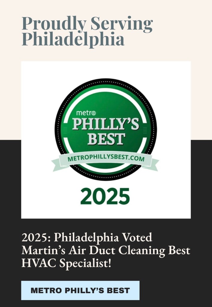2025: Philadelphia Voted Martin’s Air Duct Cleaning Best HVAC Specialist!